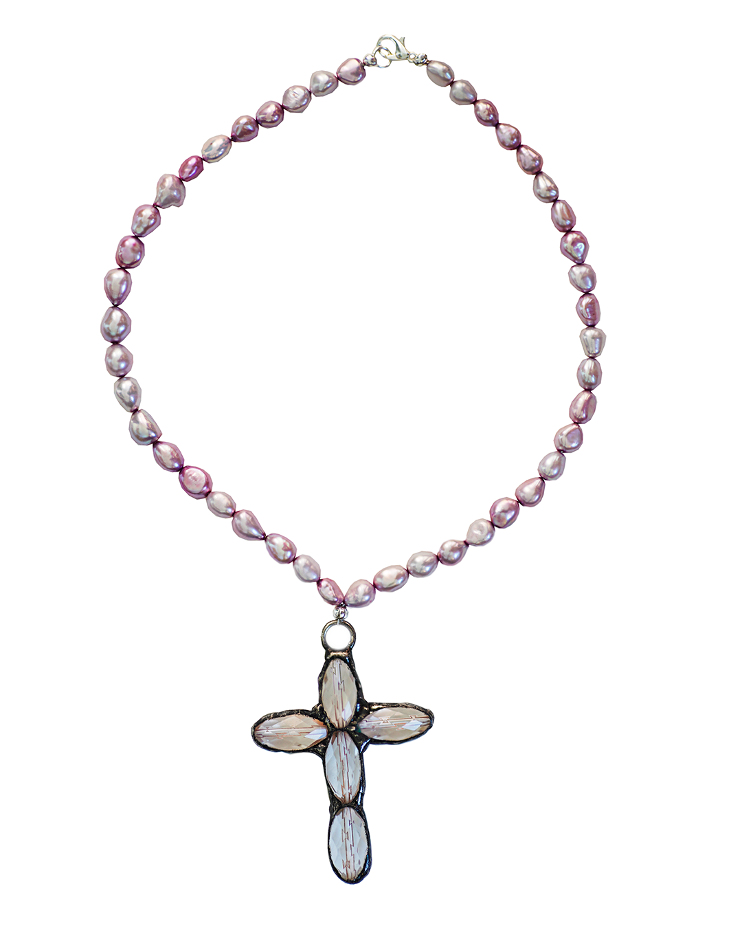 Dimensional Lilac freshwater pearls, iridescent glass crystal cross
