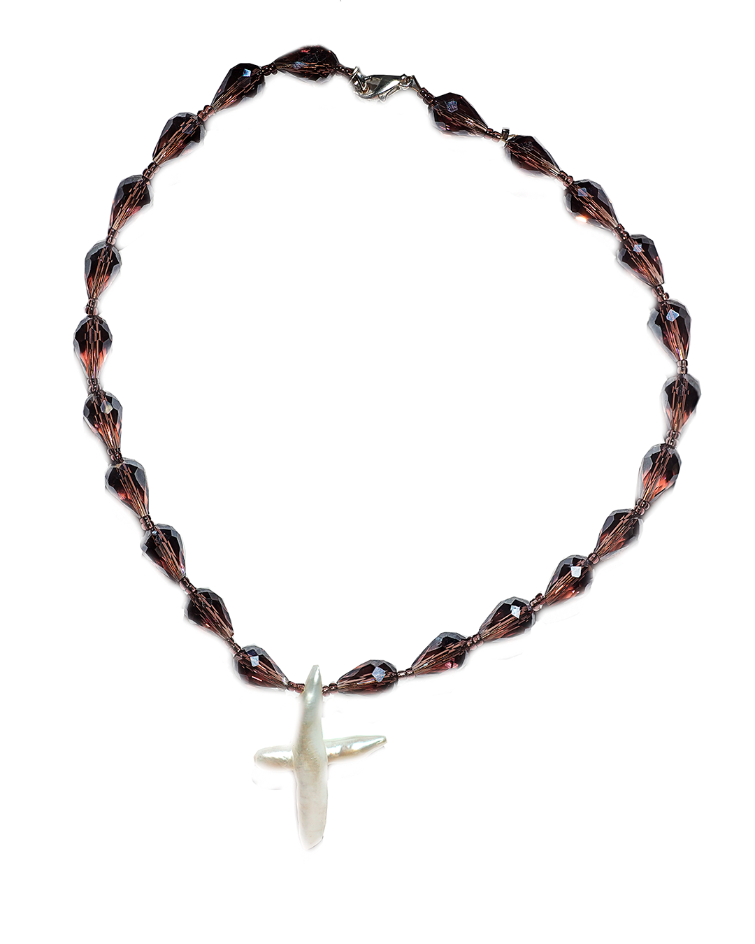 Cinnamon rose-violet crystal glass beads, freshwater pearl cross